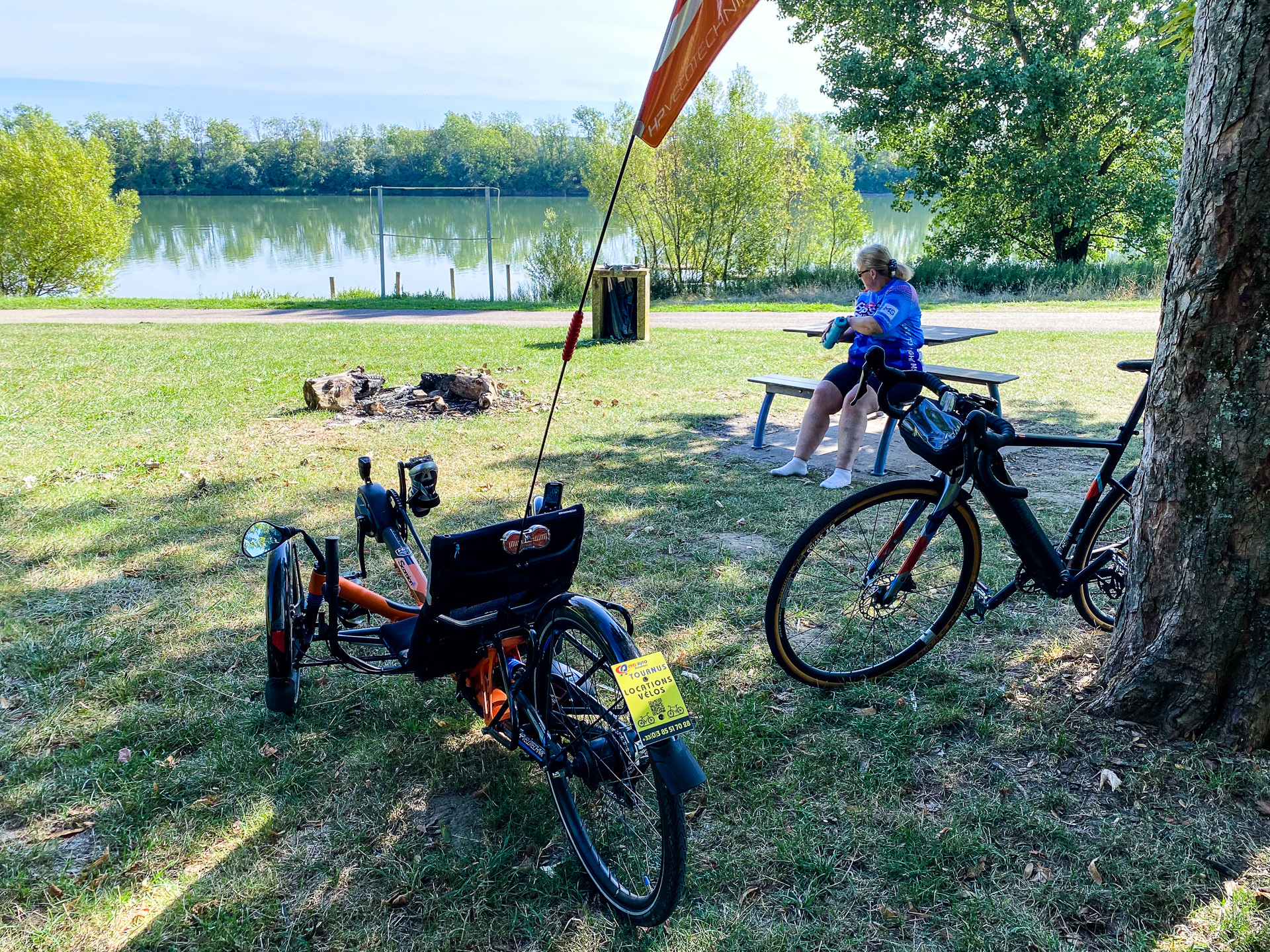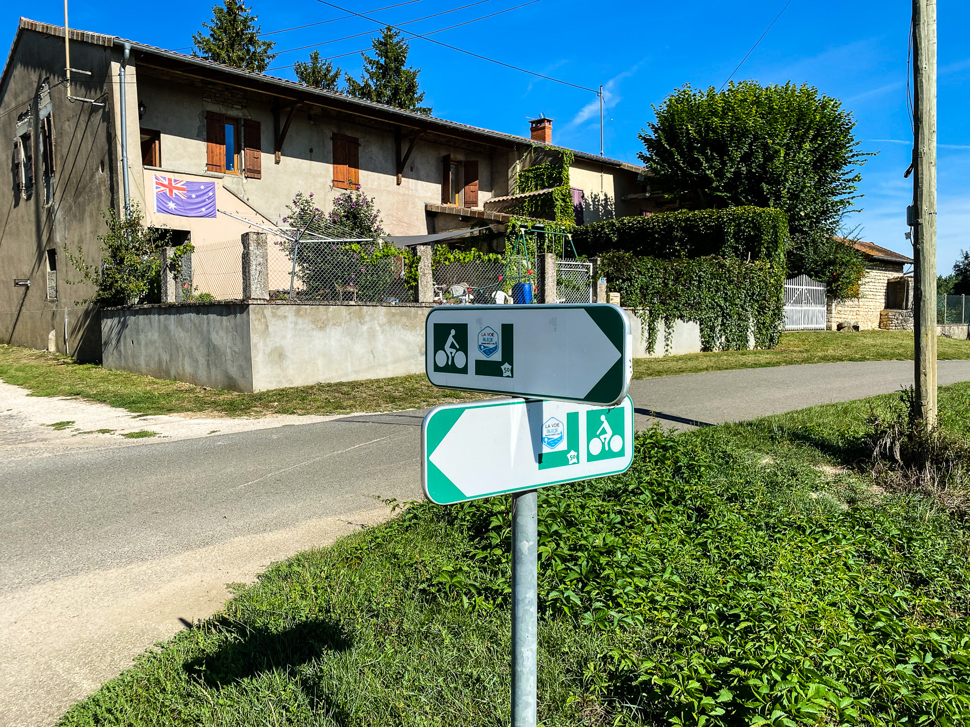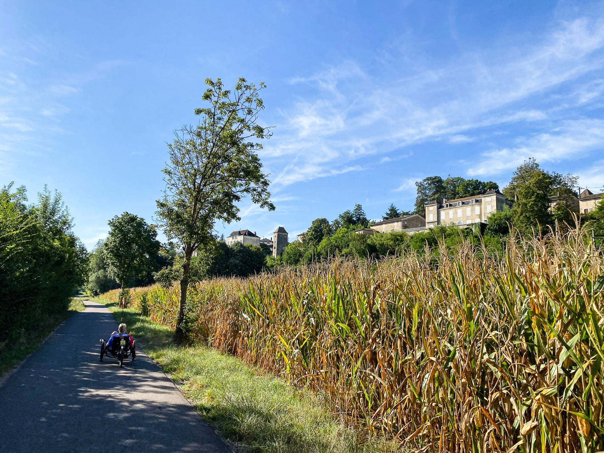 Gigny (pronounced “Jinny”) sits on the river Saone and we could see the river through the trees. The Voie Bleue is a path that extends from Luxembourg to Lyon partly along the Saone and we rode part of that as well. Our accommodation was first class and all in all, Gigny-sur-Saone proved most excellent on all fronts.